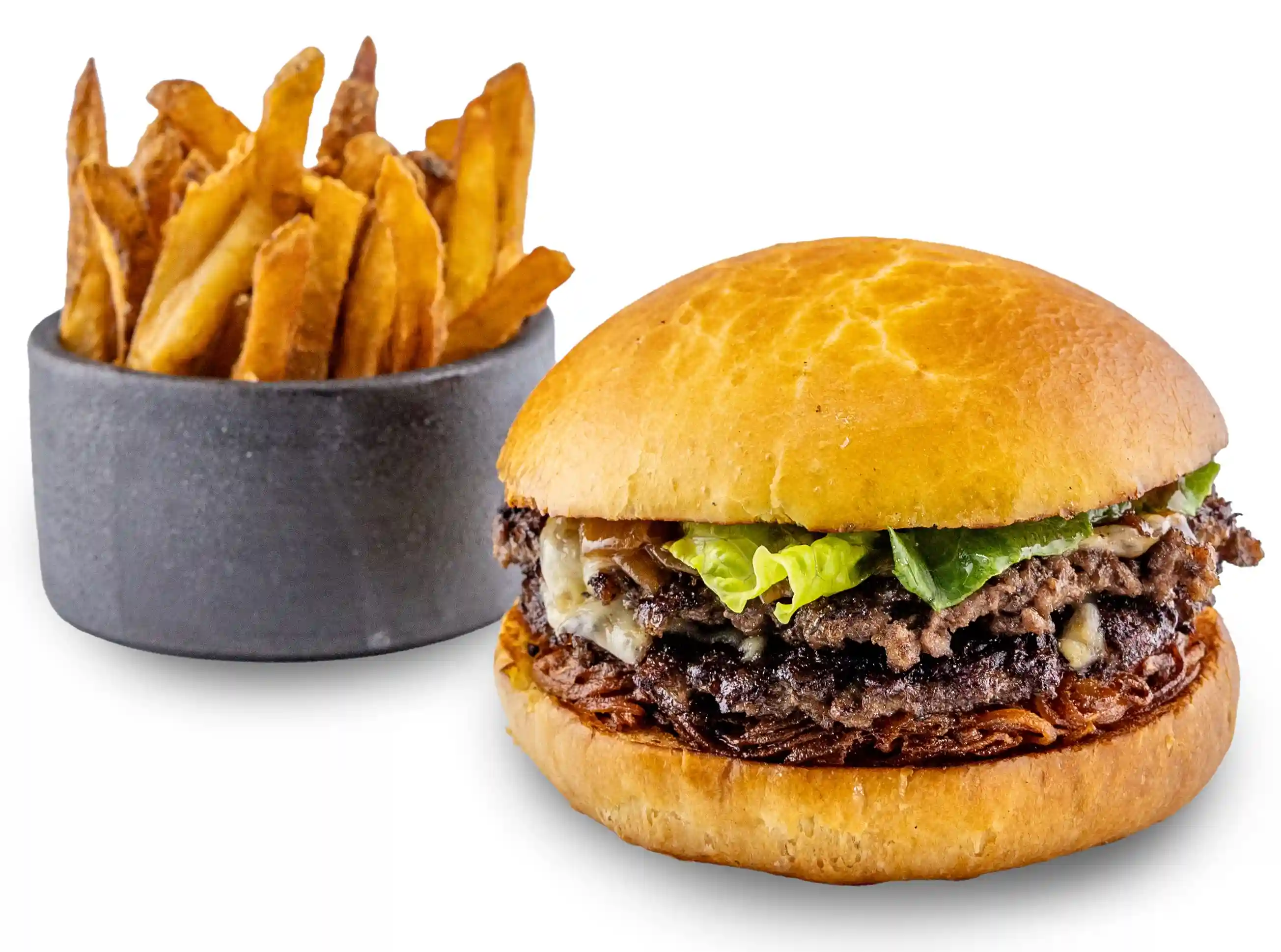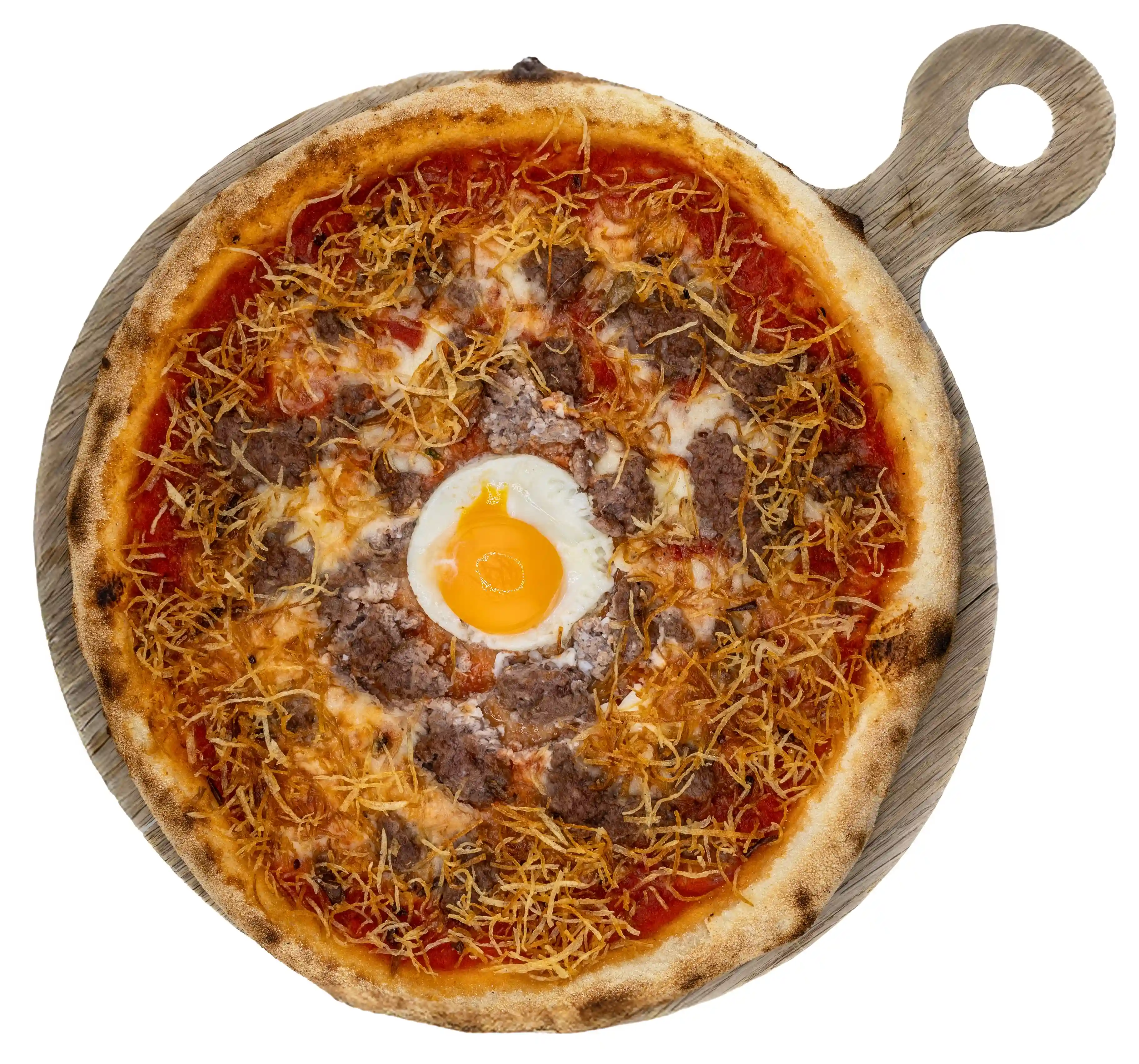 Sauce tomate « Mère », cheddar, bœuf haché, œuf au plat, pommes paille