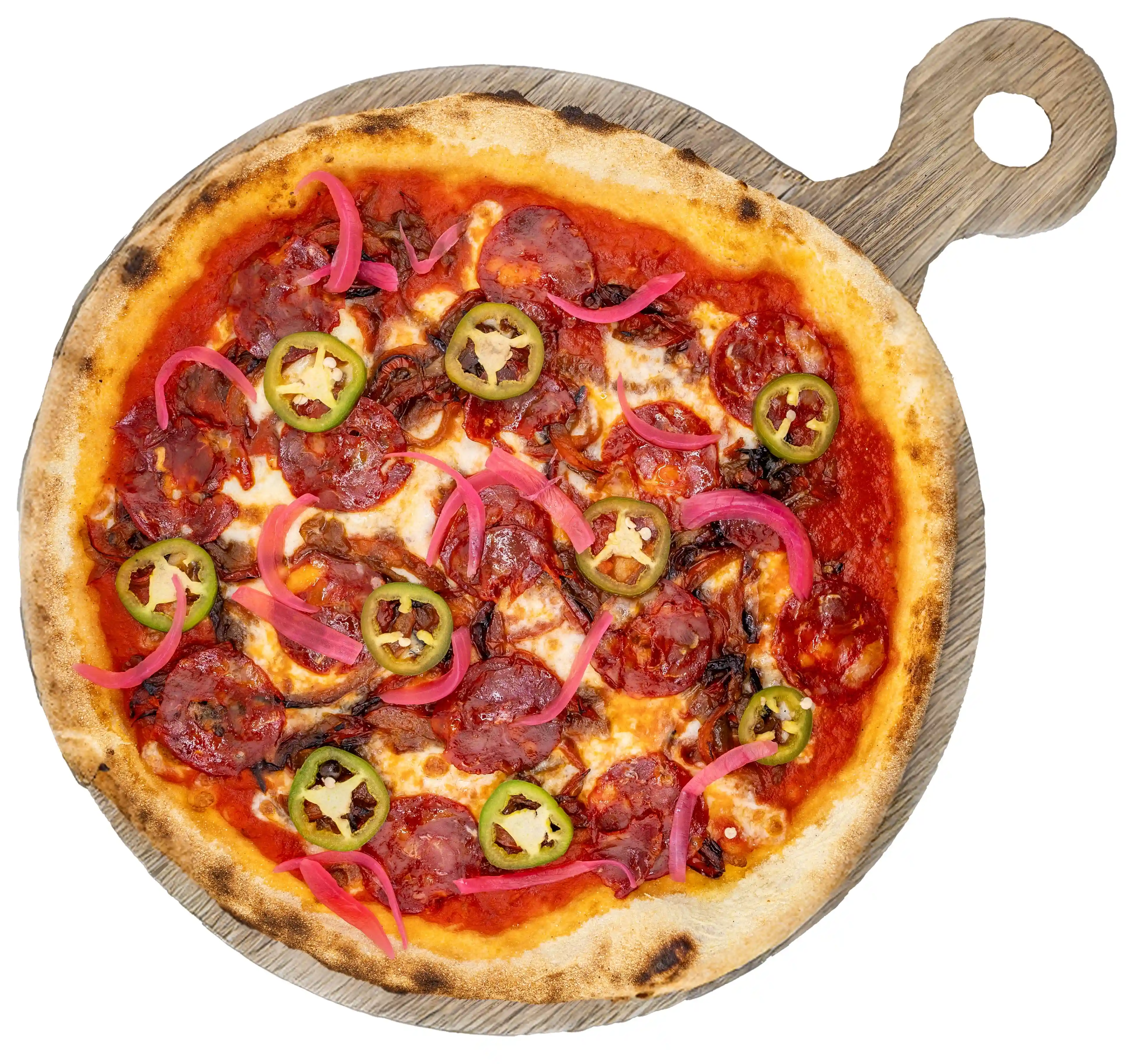 Sauce tomate « Mère », mozzarella « Fior di Latte », piperade, chorizo ibérico