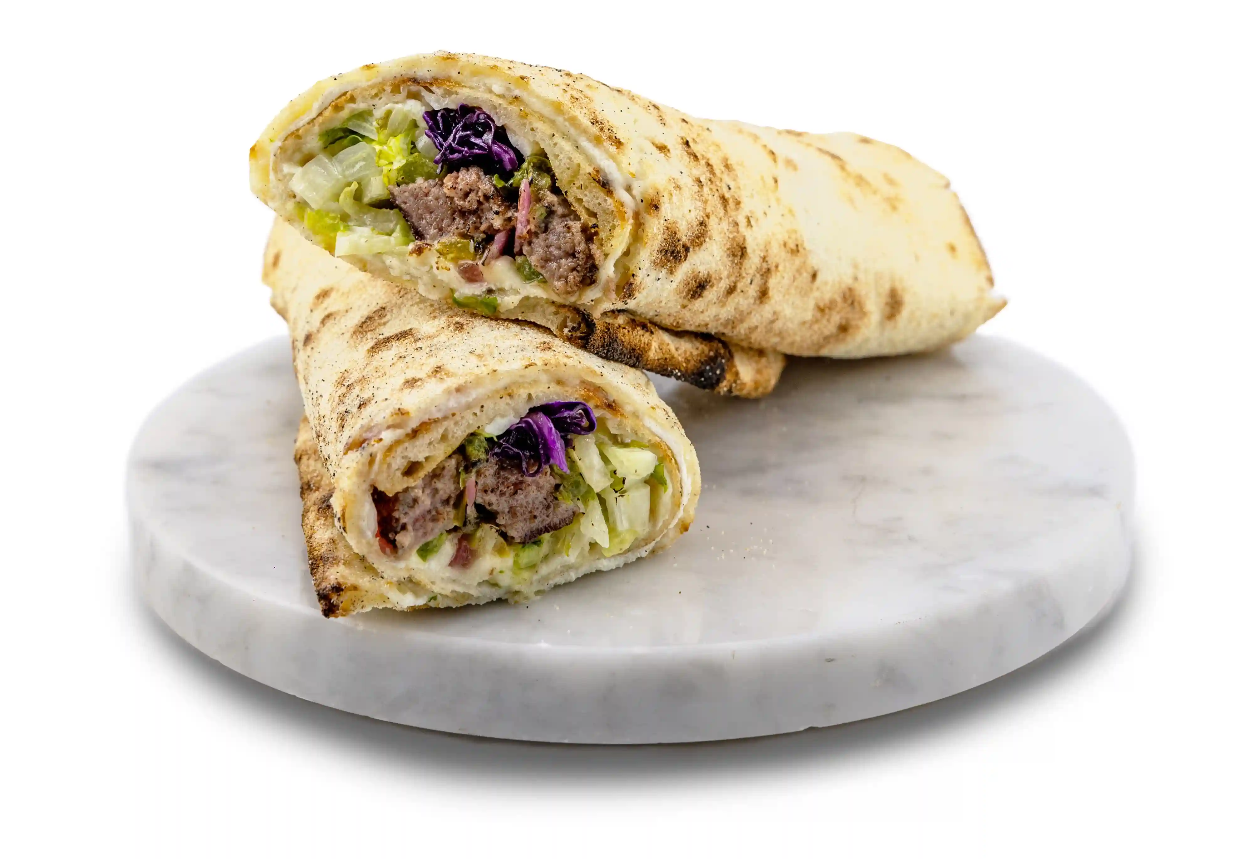 Fromage blanc, mozzarella « Fior di Latte », shawarma, poivrons, oignons, chou mariné, sauce ail